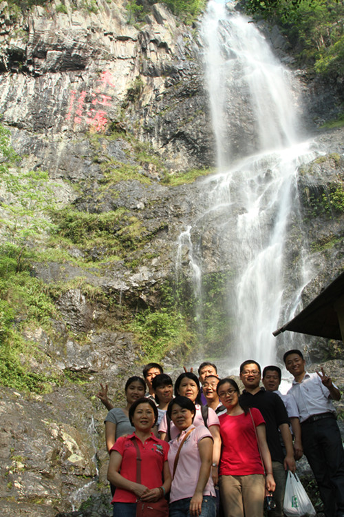 在遠(yuǎn)安縣參觀三百山國(guó)家森林公園景區(qū)里的福鰲塘。青山環(huán)抱綠水,綠水映襯青山,一幅和諧的景象。幾度周轉(zhuǎn)之后,我們終于來(lái)到了“東江第一瀑”之稱的-東江瀑布。一股感恩大自然,感恩祖國(guó),對(duì)香港同胞飲用水關(guān)心的感覺(jué)油然而生。