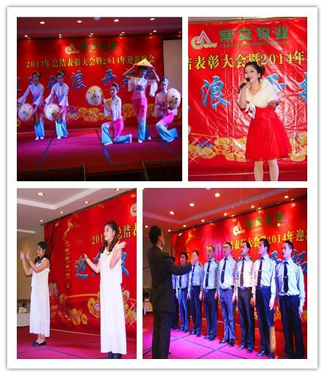 常安物業(yè)年終總結(jié)表彰大會暨迎新晚會于2014年1月17日在學(xué)府路順德佬圓滿結(jié)束。整個活動分為三個環(huán)節(jié)。1、2013年終總結(jié)大會。張總在會議上對公司一年主要工作、取得的成績做了通報,對2013年表現(xiàn)優(yōu)秀的服務(wù)中心、個人給予表彰。2、迎新晚會。各部門、服務(wù)中心的精彩表演;搞笑、歡樂的游戲;激動人心的抽獎將整晚的活動拉向高潮。3、歡樂晚宴。我們共同舉杯,開懷暢飲,慶祝2013年的輝煌,迎接新一輪的挑戰(zhàn)。