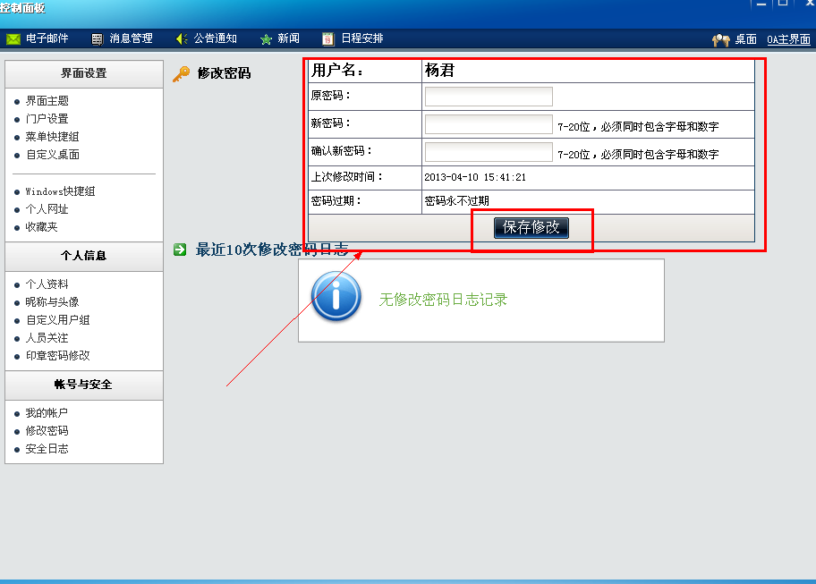 點(diǎn)擊“修改密碼”