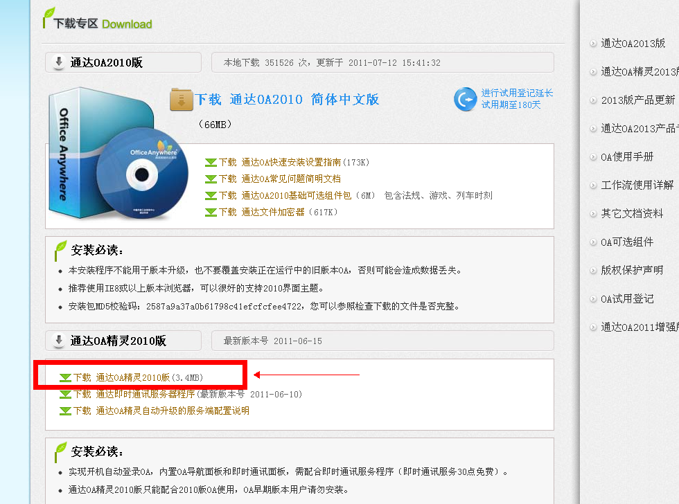 由于我們公司OA辦公系統(tǒng)版本為2010年,所以建議大家統(tǒng)一下載2010版OA辦公精靈。避免不必要的麻煩。下載地址:http://www.tongda2000.com/download/2010.php