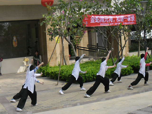 活動(dòng)開始前,紅紅火火的腰鼓表演和少兒武術(shù)表演引來不少居民下樓觀看。為了增添節(jié)日氣氛,此次活動(dòng)還特別邀請到留仙居腰鼓隊(duì)和春秋武藝培訓(xùn)中心前來為麗雅苑小區(qū)的居民們作開場表演,效果十分顯著。