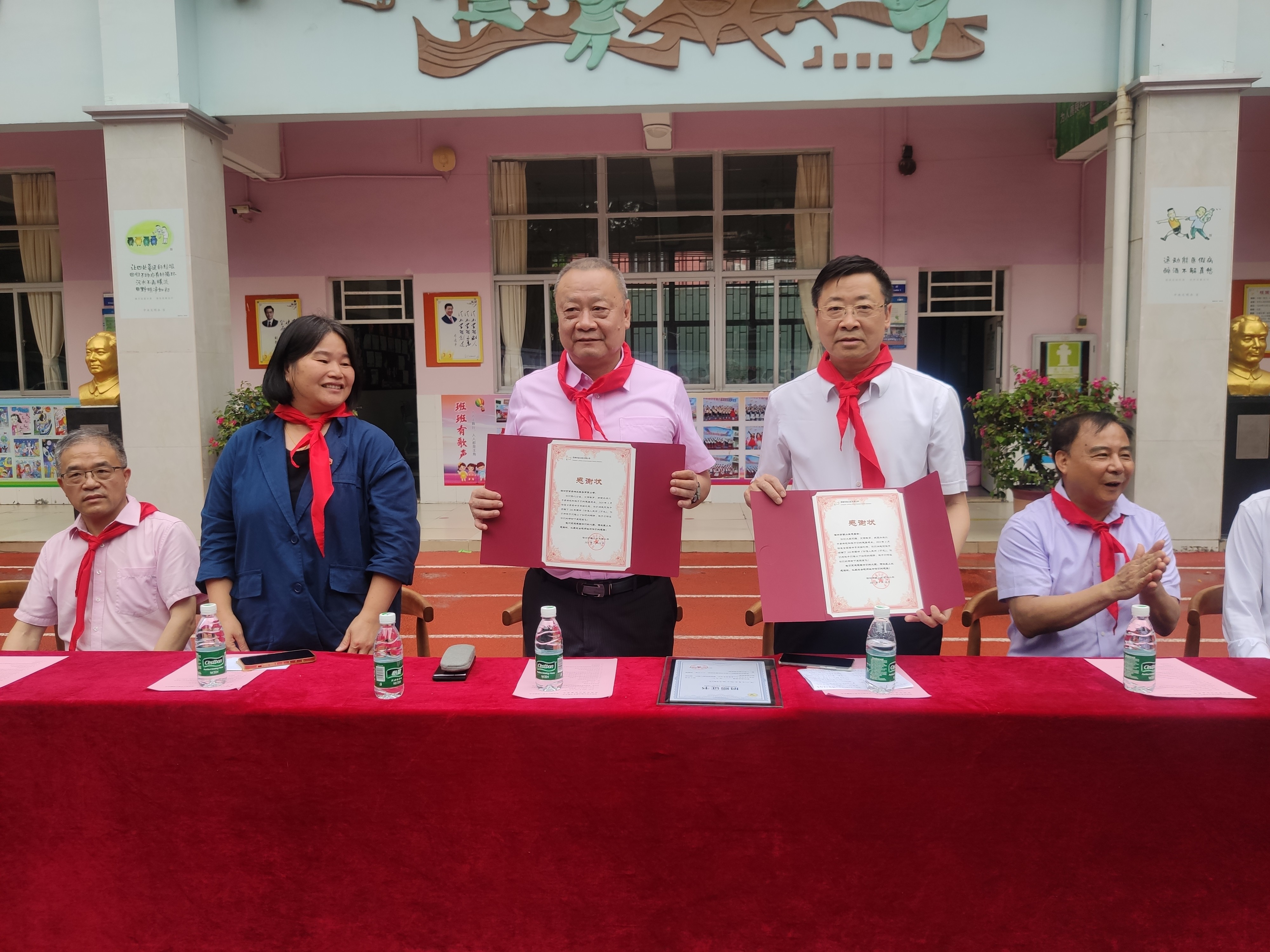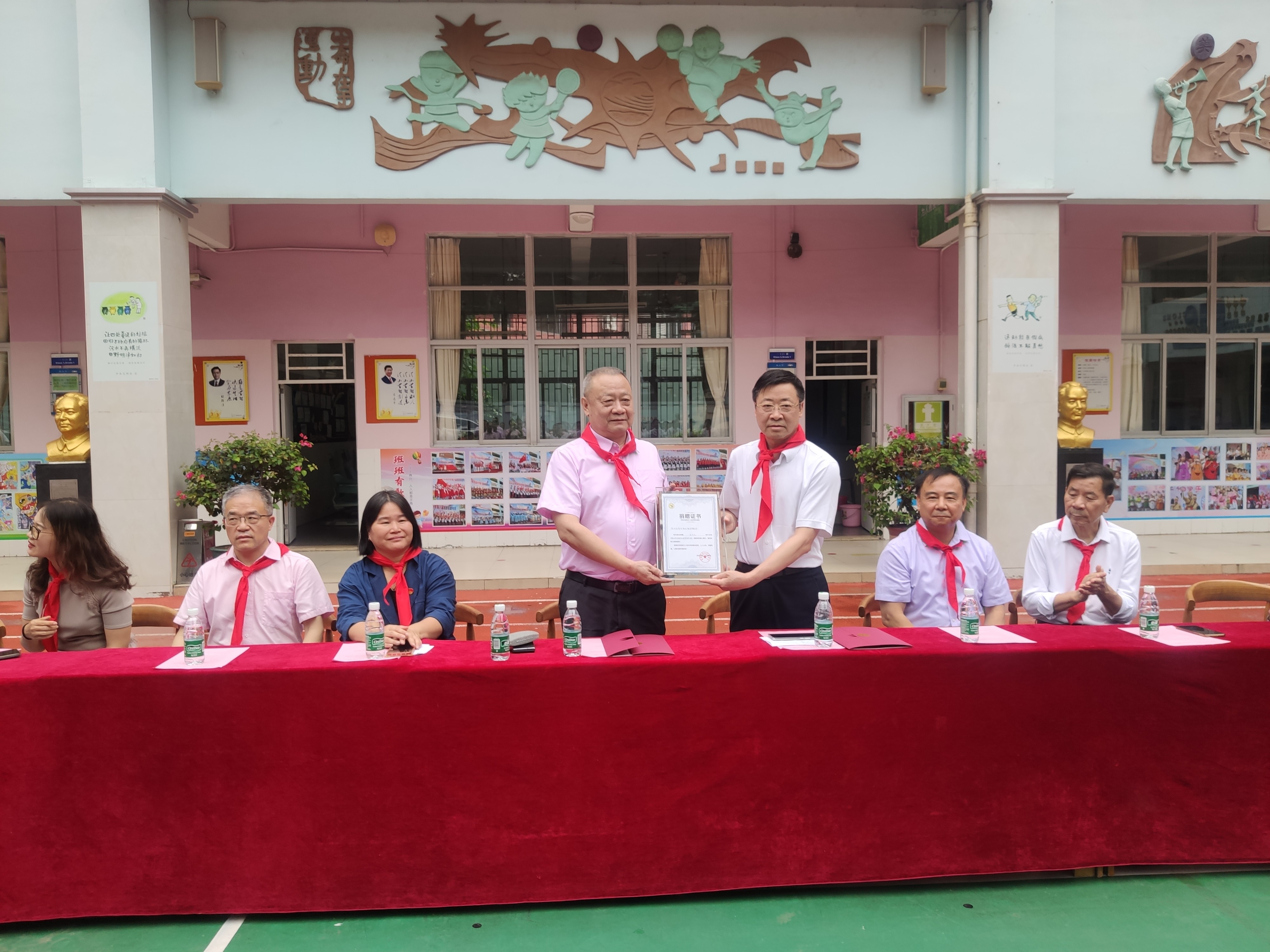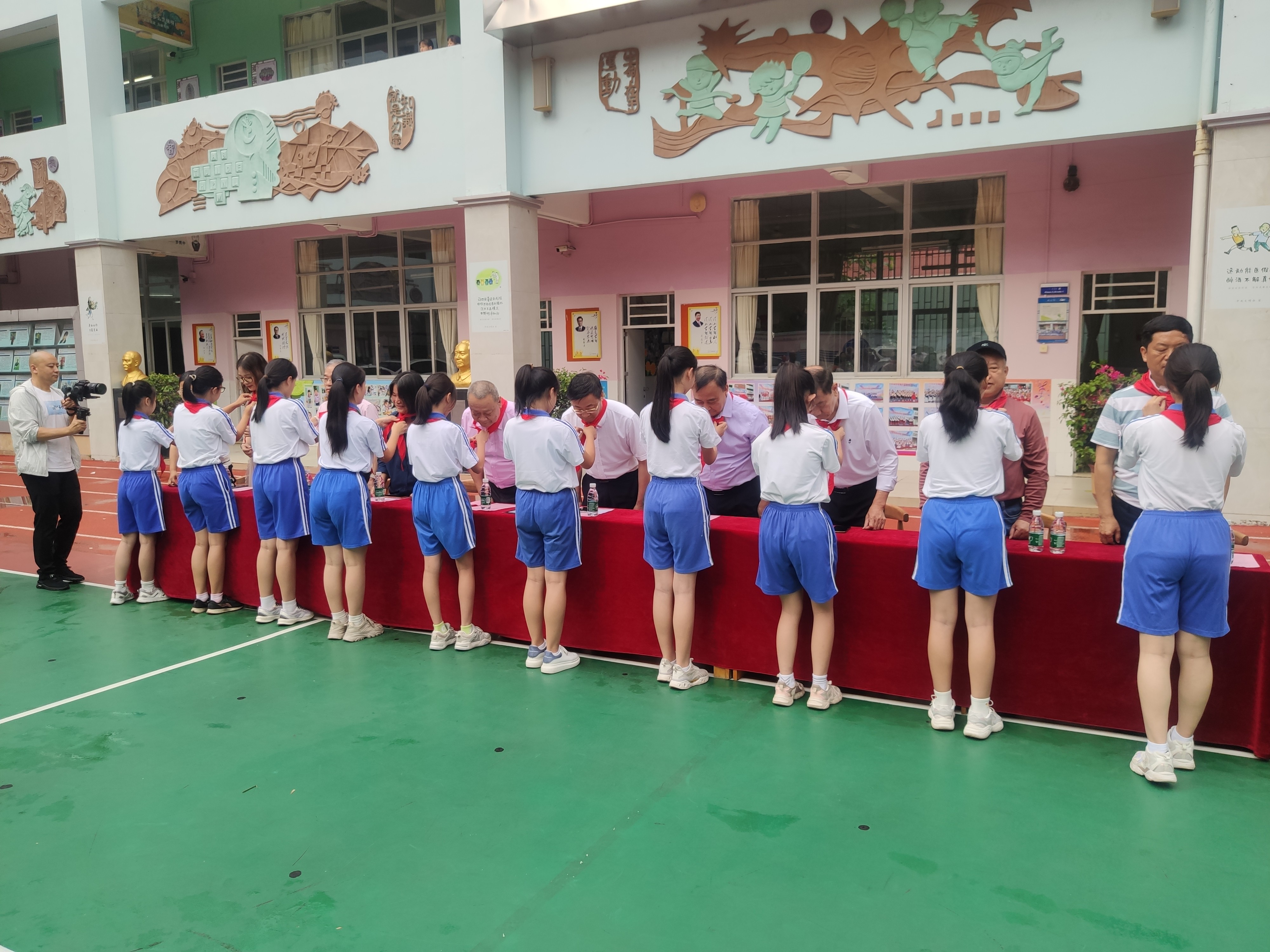6.東灣小學(xué)少先隊(duì)員為在座的領(lǐng)導(dǎo)系紅領(lǐng)巾。